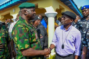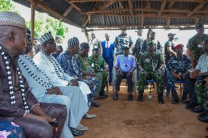 Accompanied by the Governor of Benue State, Rev. Fr. Hyacinth Alia, and the Inspector General of Police, Mr. Kayode Egbetokun, the CDS held a strategic community dialogue with local leaders, including traditional rulers and religious figures. The meeting aimed to address growing security concerns and chart a path forward.