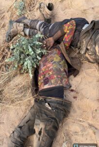Acting on actionable intelligence ambushed members of the Lakurawa Terrorist Group near the border between Augie Local Government Area (Kebbi State) and Binji Local Government Area (Sokoto State). The operation, executed in Kerani Village, resulted in the elimination of 2 terrorists and the recovery of 2 motorcycles used by the insurgents. The 2 terrorists were wearing camouflage uniforms with 2 motorcycles padded with thick blankets and fitted with equipment for long range movement including hand tyre pumps.